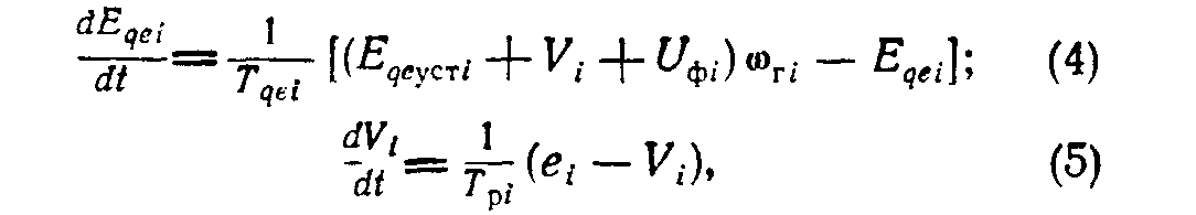 ωκ —частота в к-м узле энергосистемы. Остальные обозначения общеприняты [Л. 1—2]. Возможно использование и более точных моделей генератора, учитывающих переходные процессы в демпферных контурах (по одному контуру в осях d и q).Автоматический регулятор возбуждения моделируется