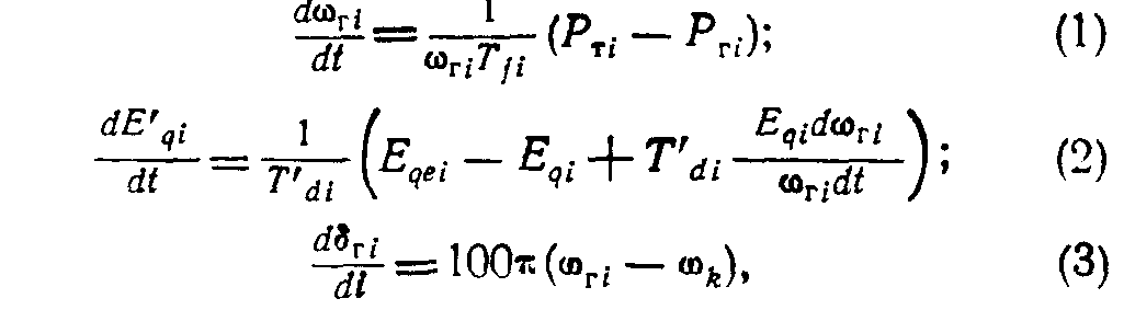 Pij, Qij должны учитывать взаимные скольжения векторов напряжения по концам связи [Л. З].Для принятой математической модели угловая скорость вращения вектора напряжения в каждом узле электрической системы является безынерционной координатой и может определяться, например, из решения систем алгебраических уравнений (9) и (10).