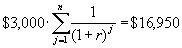 Пример 2. Руководство предприятия собирается внедрить новую машину, которая выполняет операции, производимые в настоящее время вручную. Машина стоит вместе с установкой $5,000 со сроком эксплуатации 5 лет и нулевой ликвидационной стоимостью. По оценкам финансового отдела предприятия внедрение машины за счет экономии ручного труда позволит обеспечить дополнительный входной поток денег $1,800. На четвертом году эксплуатации машина потребует ремонт стоимостью $300.