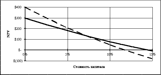 Пример 1. Пусть оба проекта предполагают одинаковый объем инвестиций $1,000 и рассчитаны на четыре года.
