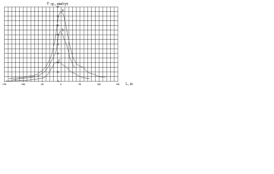 11 шахты “Южнодонбасская №3” на трех экспериментальных и одном контрольном участках с длиной каждого по 40 м. Выработка была проведены с двусторонней подрывкой вприсечку к выработанному пространству ранее отработанной 3-й восточной лавы с оставлением целика угля шириной 4 м. На первом экспериментальном участке была установлена 1 балка каркасной усиливающей крепи с ребрами жесткости – отрезками металлических сегментов из спецпрофиля, на втором участке – одна аналогичная балка с усиливающими анкерами на каждой крепи и на третьем участке – 2 балки усиливающей крепи с анкерами, причем балки подвешивались к верхнякам крепи параллельно на расстоянии 1,5 м, а анкера бурились с наклоном в противоположные стороны друг от друга под углом 300 к вертикальной оси выработки. Результаты опытно-промышленной проверки подтвердили высокую эффективность предложенной каркасной усиливающей крепи. На первом экспериментальном участке общие смещения пород кровли по результатам замеров были снижены на 25-30%, на втором – на 35-50%, а на третьем в 1,5 –2 раза. Полученный результат можно объяснить эффектом перераспределения несущей способности между разнозагруженными комплектами арочной крепи с помощью жесткой усиливающей крепи.При обработке результатов эксперимента был установлено, что при использовании каркасного усиления основной крепи максимальные значения скоростей смещений уменьшаются с увеличением жесткости крепи усиления и смещаются вперед по ходу лавы в сторону “недогруженных” комплектов, тогда как на контрольном участке аналогичные комплекты крепи в силу их обособленной работы еще не вступили в работу (рис. 1).