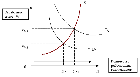 Рис.1 Рынок для выпускников высших учебных заведений с учетом изменений в спросе