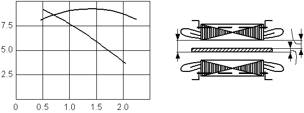 Для полноты анализа необходимо учитывать влияние толщины ВЭ на величину немагнитного зазора (рисунок 1.4). Видно, что последний увеличивается при увеличении , а это ведет к снижению электромагнитного усилия.