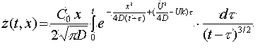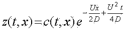 | Для перехода от функции z(t,x) к c(t,x) используя (9) получаем изменение концентрации потока в пространстве и времени : | |