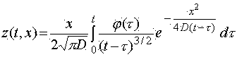 | где: Z - искомая функция зависящая от t и x, а p и g некоторые постоянные величины. | |