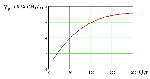 | Рисунок 2 - Скорость нарастания концентрации метана в тупиковой выработке. | |
