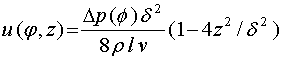 скорость течения смеси в зазоре будет определяться выражением [4]