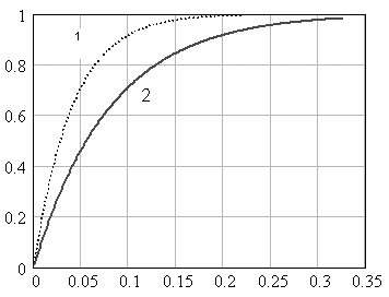 времени; 1 — при Т = 0,4 с. ; 2 — при Т = 0,8 с.