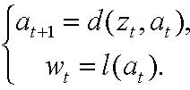 t+1 а функция выходов – формируемый выходной набор w. Характерным для автомата Мили является то, что выходной набор w зависит как от входного набора zt, так и от внутреннего состояния at. В автомате Мура функция выходов зависит только от состояния at и не зависит от входного набора, поэтому поведение автомата Мура описывается уравнениями: ![]()