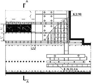 Применение дополнительных мероприятий позволяет более быстро создать систему крепь-порода, что препятствует расслоению массива вокруг выработки, в результате чего уменьшается нагрузка на крепь выработки и на охранное сооружение. Позволяет уменьшить затраты на поддержание выработок, и увеличить производительность труда. В авторском свидетельстве [7] предложен способ поддержания сопряжения лавы с выработкой, включающий в себя после выемки пласта возведение на сопряжении полосы охранного сооружения с установкой по его бокам распорной крепи, отличающийся тем, что, с целью снижения затрат на поддержание выработки и повышения безопасности работ, перед возведением полосы охранного сооружения осуществляют посредством распорной крепи равномерное вдавливание в горный массив приконтурных слоев пород кровли с усилием 1500-3000 кН на 1 м погонный. Величину распора поддерживают до окончания возведения охранного сооружения (рис. 6).