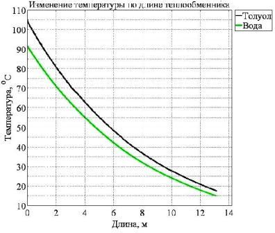 Рисунок 1 - Изменение температуры по длине теплообменника