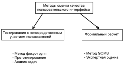 Можно выделить ряд наиболее распространенных методов оценки качества пользовательского интерфейса (рис. 4):