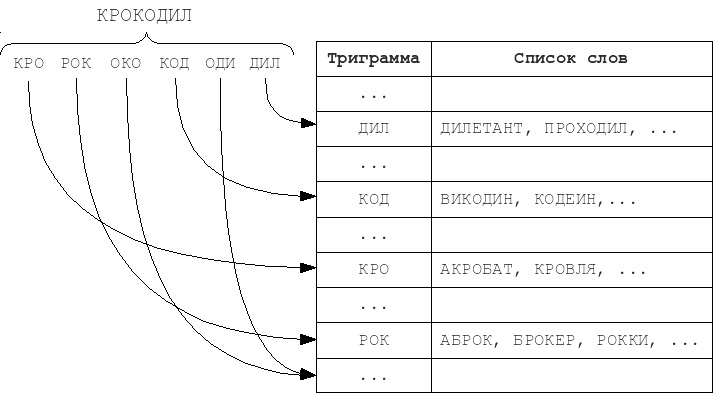 При сравнении двух строк или слов, с учетом максимально возможного количества расхождений можно выделить в словах (строках) общие части. После чего можно выполнять поиск по таким частям. Такой метод получил название метод N-грамм, а совпадения и являются N-граммами. Метод N-грамм состоит из нескольких этапов: